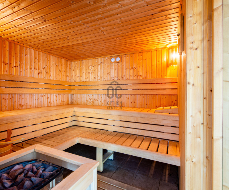 - pinceszinten háromállásos garázs, konditerem, szauna, tusol,