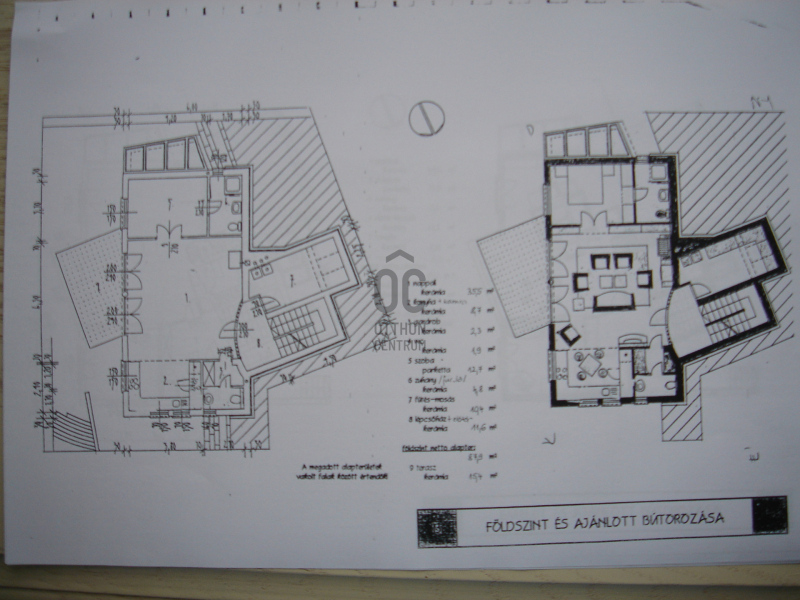 - az 1. lakás a földszinten helyezkedik el: 88nm (nappali, háló, konyha, fürdőszoba, vendégfürdő, gardrób) + 15nm terasz,