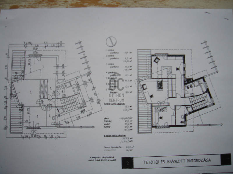 - a 2. lakás az 1. emeleten: előszoba, nappali, étkező, konyha, fürdőszoba, vendégszoba, 29,6nm terasz; a tetőtérben: 3 szoba, 2 fürdőszoba,