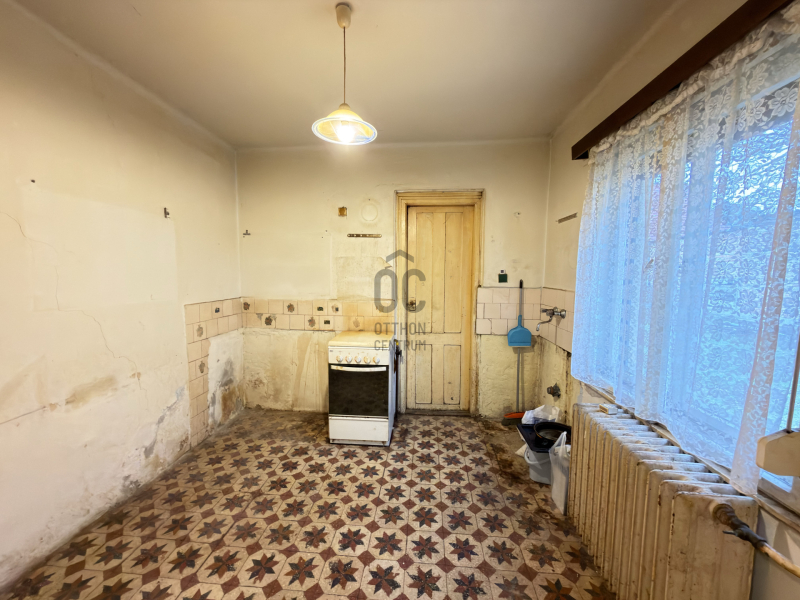 Kis forgalmú utcában egy 573 nm-es saroktelken áll ez a 91 nm-es ,1970- ben épült ingatlan A helységek kiváló elosztása végett egy kényelmes otthont lehet varázsolni belőle egy kis törődéssel. Az udvar rendezett, és hangulatos, könnyen karbantartható.