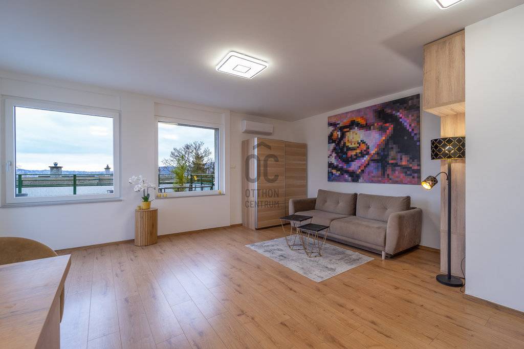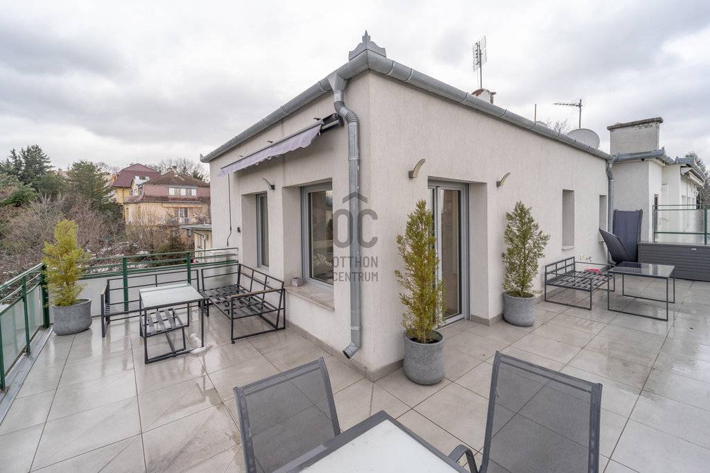 A lakás a társasház csendes felső szintjén helyezkedik el, ahonnan páratlan kilátás nyílik a Gellért-hegyre, a Budai Várra, a Parlamentre, a Halászbástyára és Budapest ikonikus városképére. A 48 m²-es tetőterasz ritka panorámás adottság: tökéletes helyszín pihenéshez, barátok fogadásához, esti beszélgetésekhez, naplementékhez – igazi városi menedék a város felett.