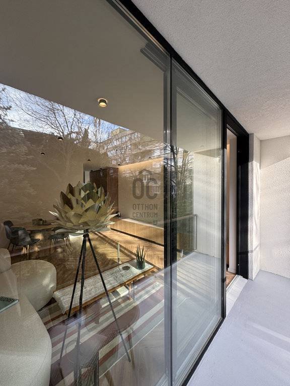 A lakáshoz tartozó terasz intim, zöldre néző kilátást biztosít, ideális helyszíne egy nyugodt reggeli kávézásnak vagy egy hosszú nap utáni esti kikapcsolódásnak.