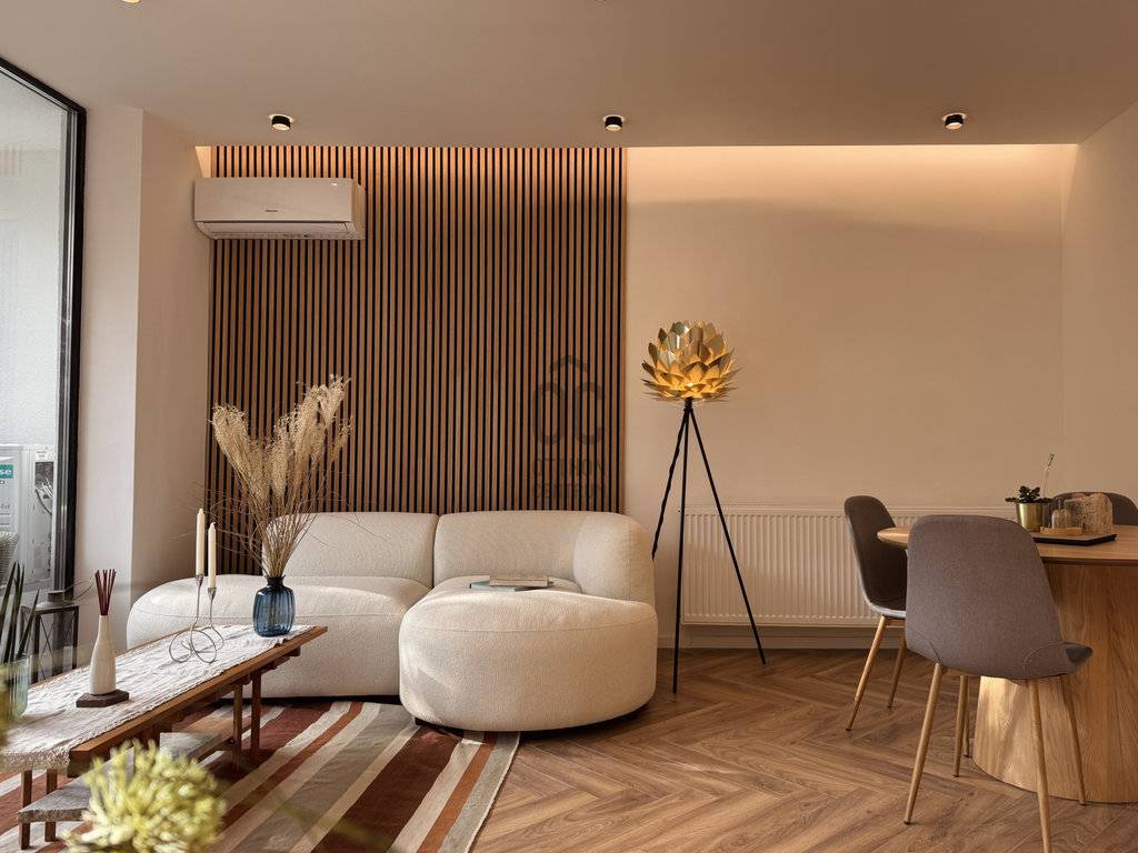 A lakás kialakításánál az esztétikum és a funkcionalitás tökéletes egyensúlya volt a cél — minden négyzetméter értéket képvisel.