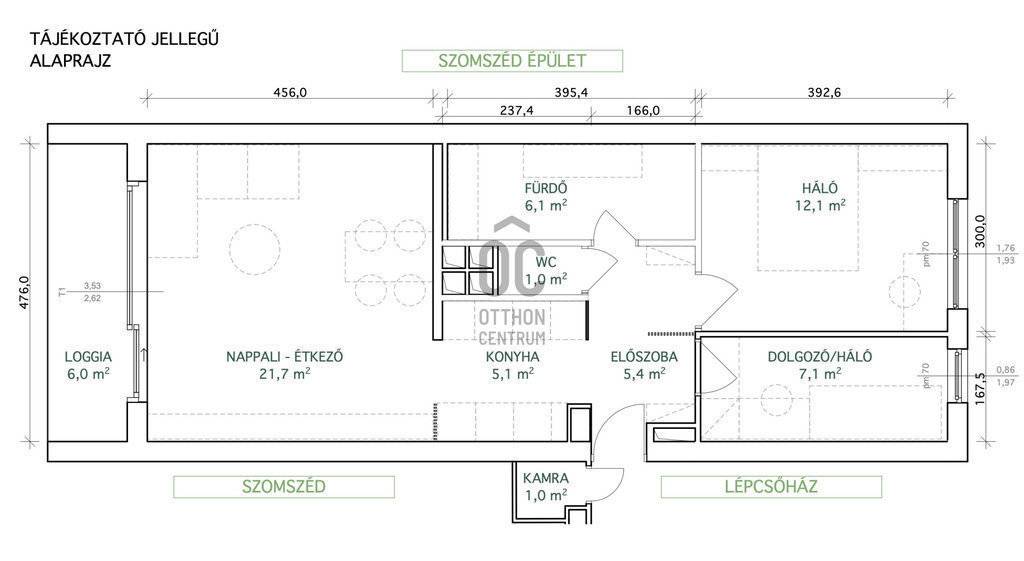 nappali-étkező 21.7 m²