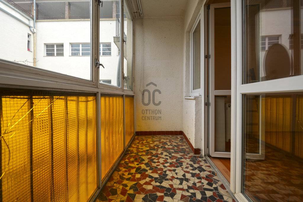 A lakáshoz egy 64m²-es zárt erkély tartozik. Az ingatlan kertre és utcára is néz, ennek köszönhetően: