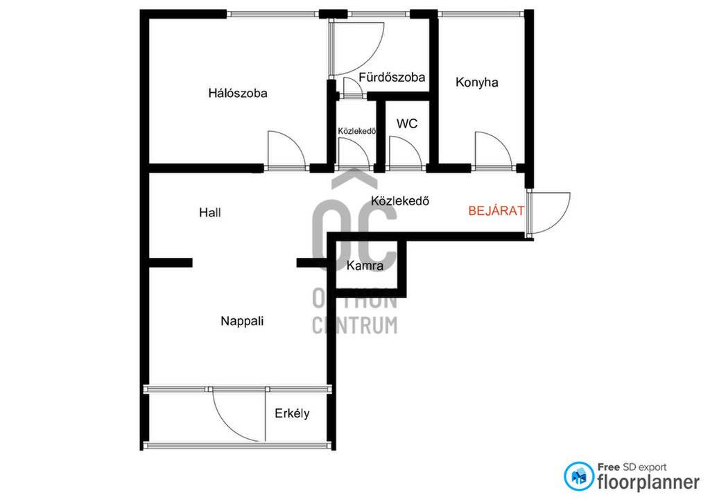 Az alaprajz kedvező adottságú, jól alakítható. A ablakos, külön nyíló konyhának köszönhetően akár egy további szoba is könnyedén kialakítható, így az ingatlan nappali + 2 hálószobás elrendezéssé is áttervezhető.