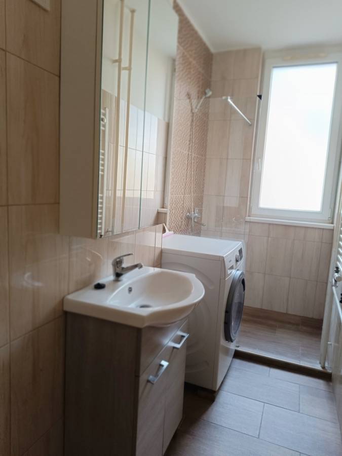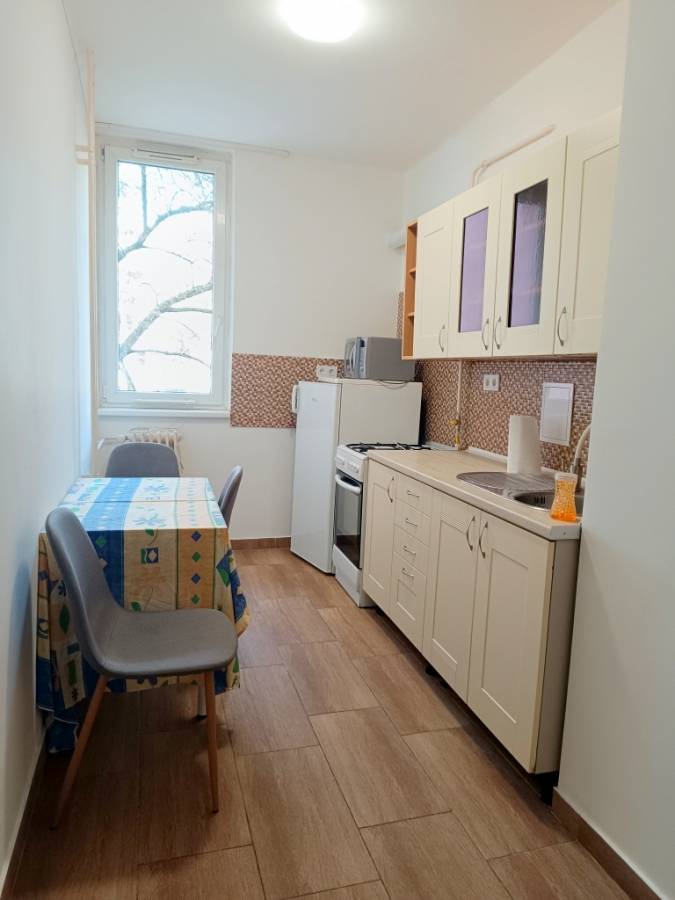 Nyíregyháza Stadion utcában, szigetelt, téglaépítésű társasház első emeletén lévő 57 nm-es, déli fekvésű, nagy loggiás lakás hosszú távra kiadó.