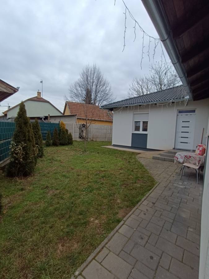 A kb. 300 nm-es, gondozott kert ideális pihenésre, családi programokra. Mérete ellenére több gyümölcsfa is helyet kapott benne, melyek az elmúlt években már termést hoztak.