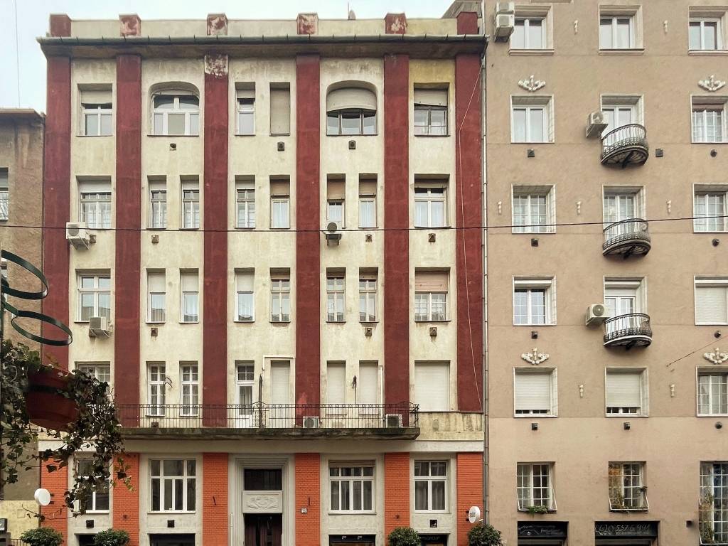 A négy emeletes ház az 1920-as években épült. Homlokzata felújított, dekoratív. A társasházban 34 albetét van, a lakás közös költsége 40.000.- Ft.