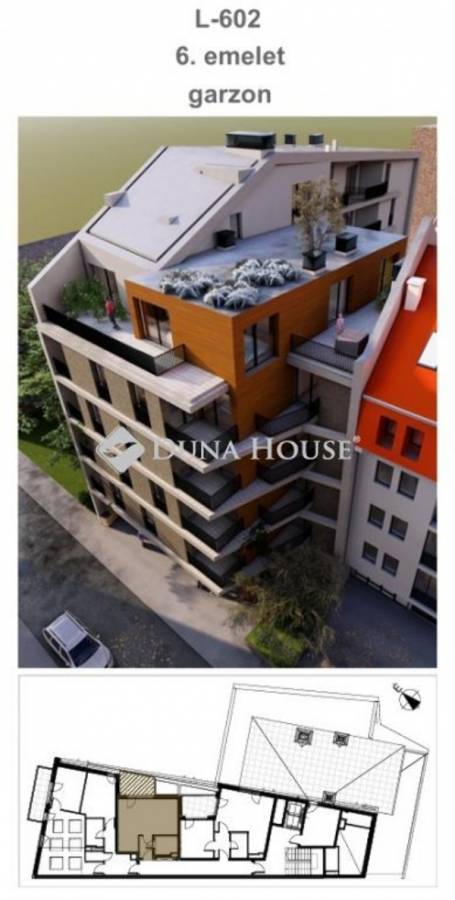 Az 1-6. emeleteken összesen 36 lakás, mindegyik terasszal, és/vagy erkéllyel.
