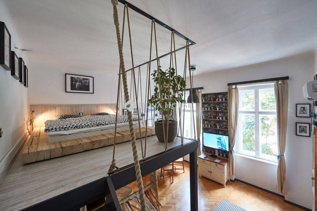 The apartment is located on the 2nd floor of a well-maintained, brick-built residential building constructed before 1950, featuring a landscaped inner garden. The 34 sqm, one-room apartment underwent a full, high-quality renovation in 2020, resulting in a youthful, trendy, and refined interior where rusticvintage elements blend harmoniously with modern urban living.