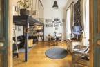 The nearly 4-meter ceiling height made it possible to create an 8 sqm wooden gallery with a height of 175 cm, making the apartment both airy and exceptionally well-utilized. The gallery-style room functions perfectly as both living room and bedroom. The open-plan kitchen with dining bar is fully equipped. The bathroom and WC are located in one room, finished in a clean, modern design.