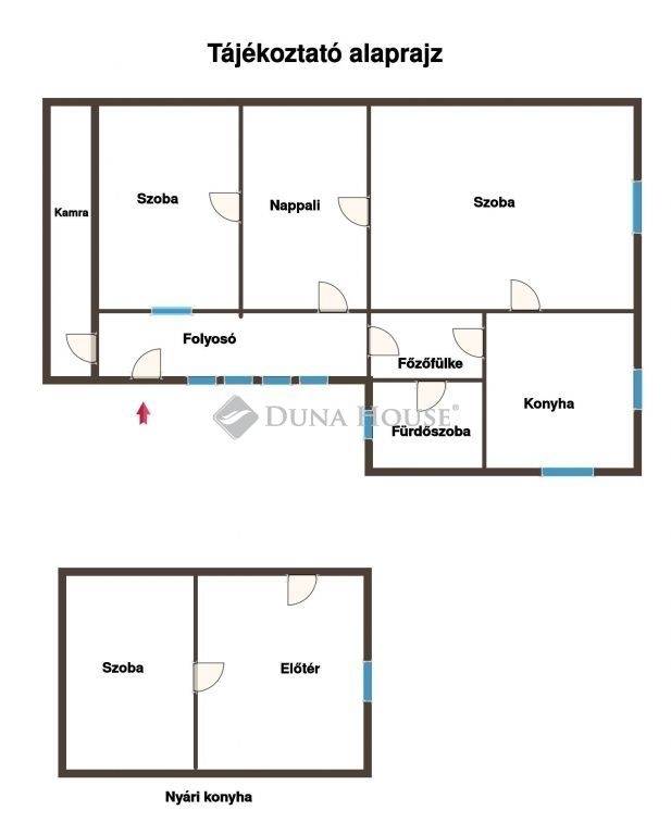 Az ingatlan 91 nm, három szobából, konyhából, fürdőből, kamrából és egy nyári konyhából áll.