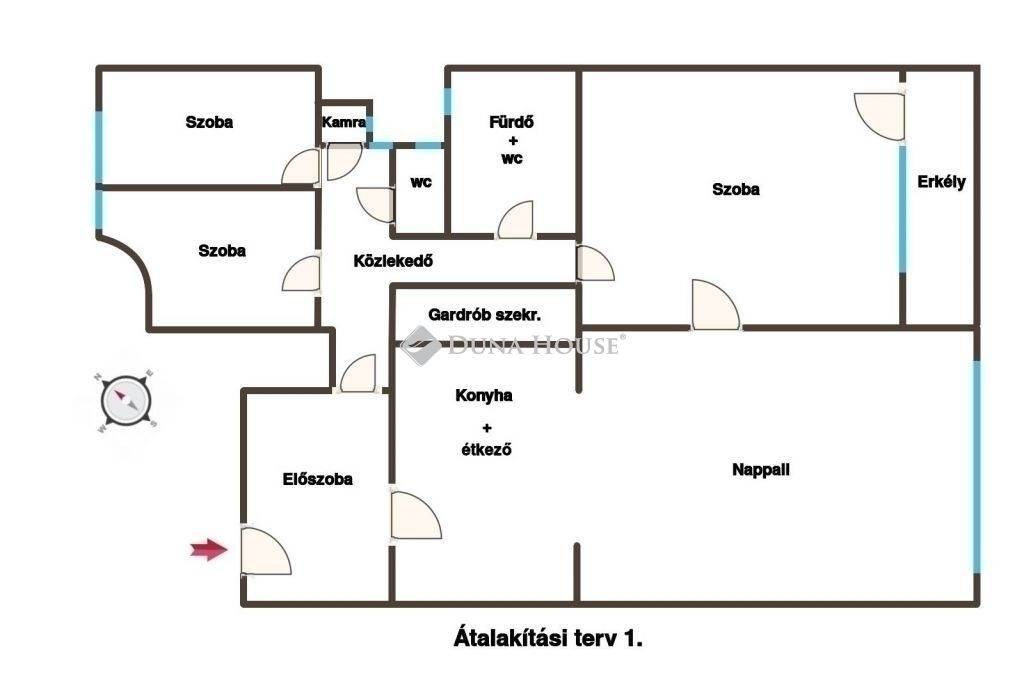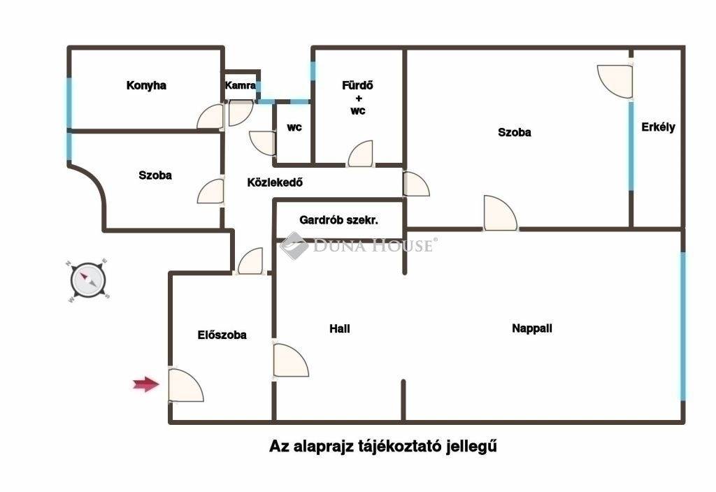 Három külön szoba, hall, két WC, erkély – mindenki kap saját teret.