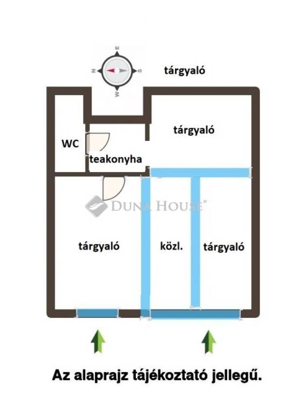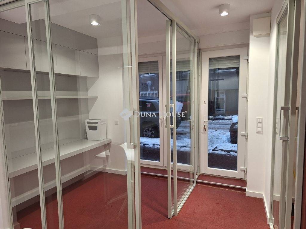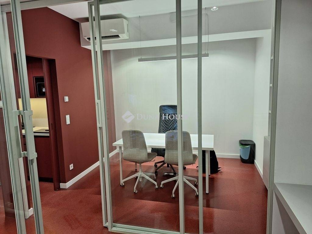 Az ingatlan két helyrajzi számon szerepel (9nm és 18 nm, műhely besorolású) és két elektromos redőnnyel is felszerelt bejárattal megközelíthető az utcafrontról. A jelenlegi kialakítás szerint a helyiségbe lépve egy közlekedőn keresztül 3 külön bejáratú tárgyaló érhető el. Ezen kívül egy teakonyha és egy WC található az ingatlan hátsó részében.