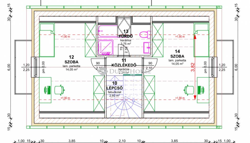 A kínálatban 1 db kétszintes ház érhető el, bruttó 91 m²-es induló mérettel (nettó kb. 80 m²).
