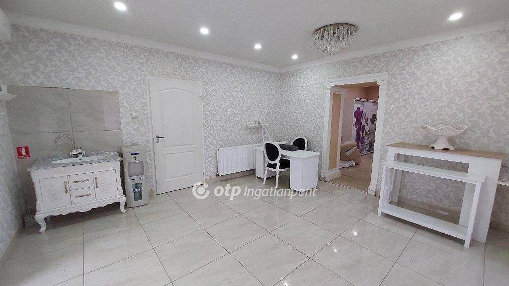 két szoba amelyek üzlethelyiségként, irodaként vagy szalonként is hasznosíthatók, egy tágas nappali, étkező, konyha, kamra és külön WC került kialakításra.