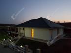-25°-os sátortető, vagy lapostető betoncseréppel fedve, járható,
