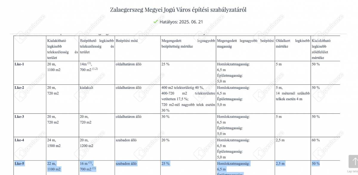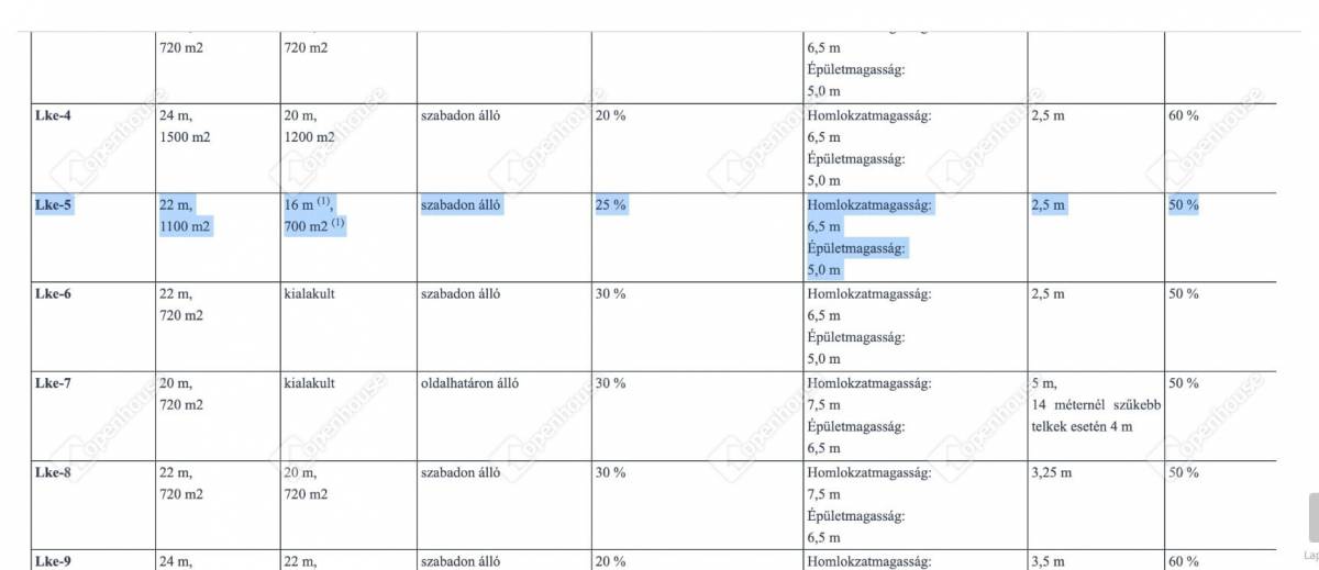 Övezeti besorolás: Lke-5 (kertvárosias lakóövezet)