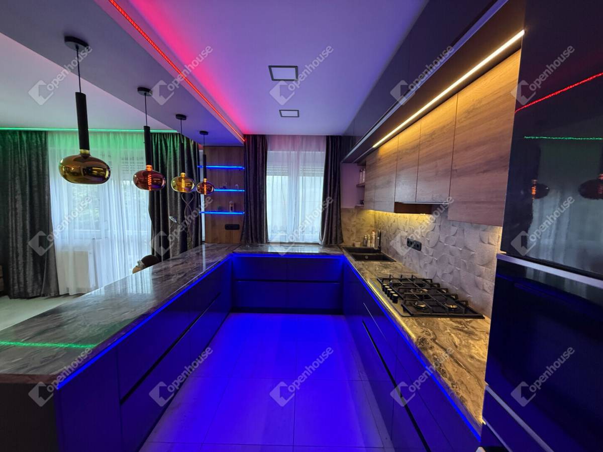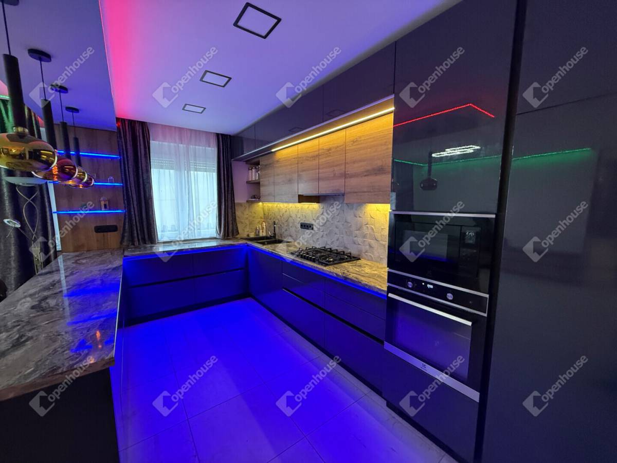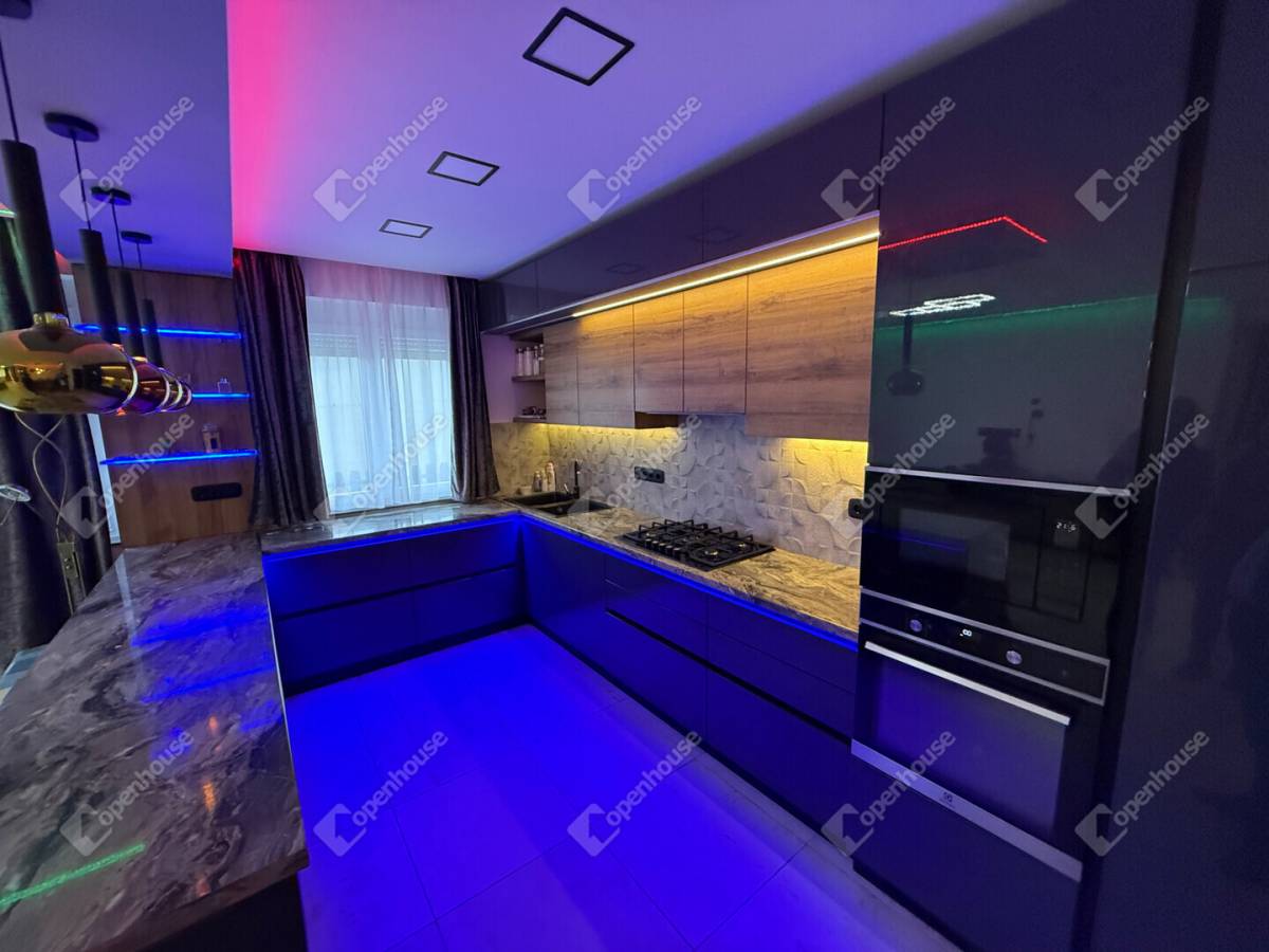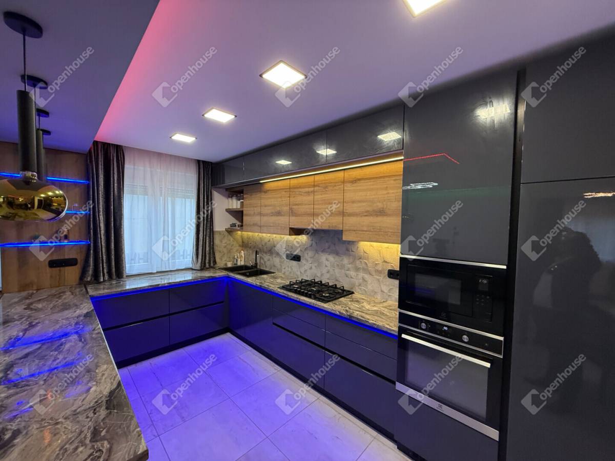 A burkolatok, lámpatestek, LED-megoldások és minden egyéb részlet gondosan összeválogatva került beépítésre – a minőség és esztétikum végig tetten érhető.