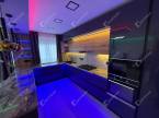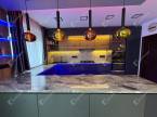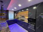 A modern, magas fényű, gépesített konyhabútor minden igényt kielégít, az okos térszervezésnek és minőségi anyagoknak köszönhetően a helyiség a luxus és funkcionalitás tökéletes harmóniáját nyújtja.