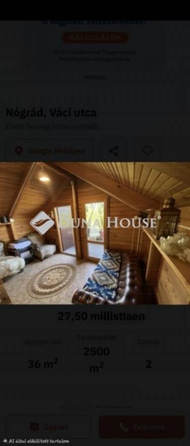 Panorámás, 2500 m²-es külterületi részén birtok két hangulatos hétvégi házzal szabadság, csend és lehetőség egy helyen!Eladó egy lenyűgöző fekvésű, 2500 m²-es, panorámás telek, ahol a természet közelsége és a nyugalom garantált. A tágas terület kiváló választás pihenésre, kikapcsolódásra vagy akár baráti összejövetelekre.A telken két különálló kis nyaraló található: Az első ház fiatalos, praktikus kialakítású hétvégi ház, amely ideális pároknak ,gyermekes családoknak vagy baráti társaságoknak.-36 m2 a telken 4 működő kút található. Napelemes rendszerrel ellátott Saját fürdőszoba és WC- tároló helyisegek- panorámás terasz- alsó és felső szint Beépített emeletes ágy Letisztult, könnyen fenntartható térTökéletes választás azoknak, akik modern, önfenntartó megoldást keresnek egy laza hétvégi elvonuláshoz. A másik épület galériás, szocreál stílusú hangulatot idéz, karakteres megjelenésével igazi egyedi atmoszférát teremt. A galéria praktikus hálórészként vagy alkotótérként is használható igazi kreatív kuckó 21 m2 + pince és terasz.A hatalmas telek lehetőséget ad további fejlesztésre, kertészkedésre, közösségi tér kialakítására vagy akár bővítésre is.Ha egy olyan helyet keresel, ahol a panoráma mindennapos élmény, a tér pedig szabadságot ad az elképzeléseidnek ezt érdemes megnézni.