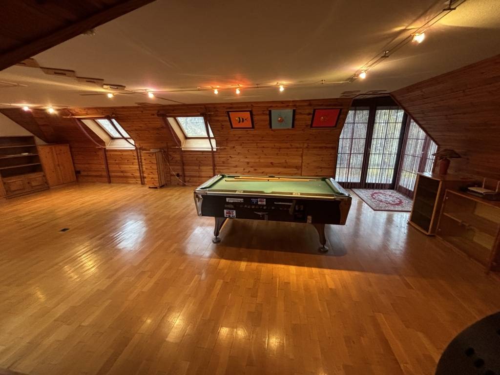 A melléképület dupla garázzsal, hobbyszobákkal, valamint egy külső bárral büszkélkedhet, a tetőtér pedig további lakó- vagy munkahelyiségekké alakítható. A hatalmas kertben található pavilon és tűzrakó teret ad a szabadidős tevékenységekhez, miközben a teljes áramellátást a napelem park biztosítja.
