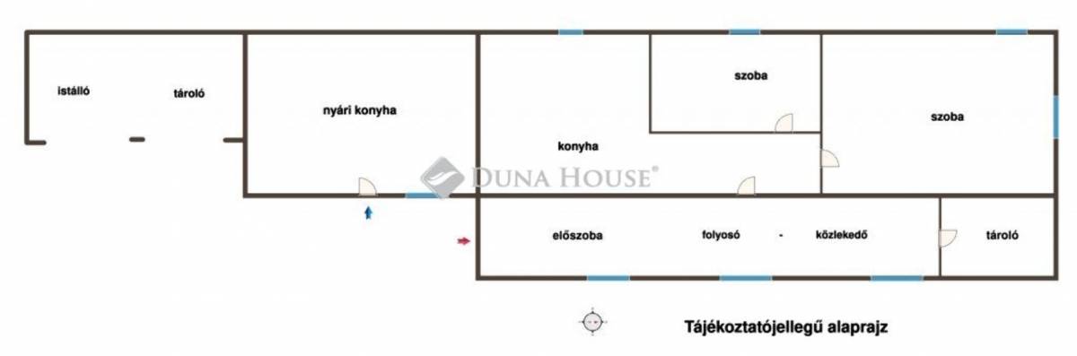 Helyiségei: nappali- szoba, szoba, konyha - étkező, gardrób, előszoba, folyosó-közlekedő, nyári konyha, tároló