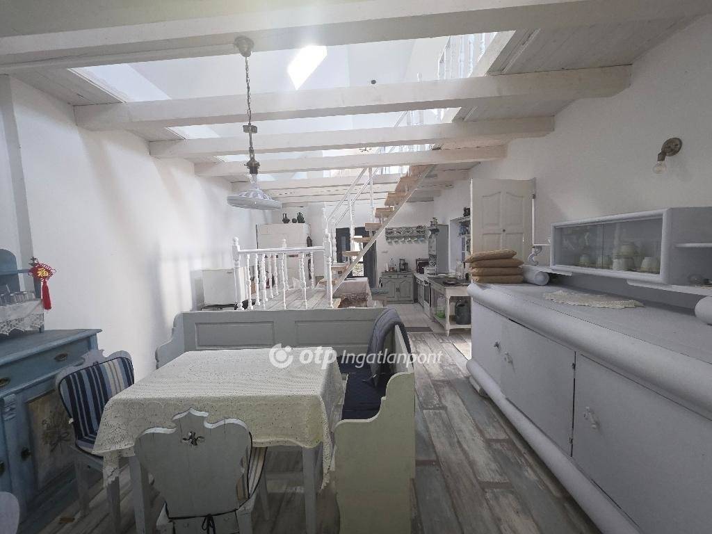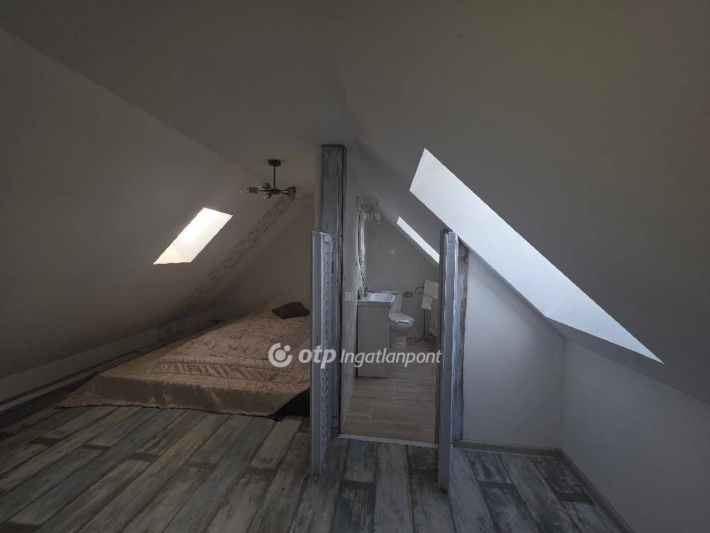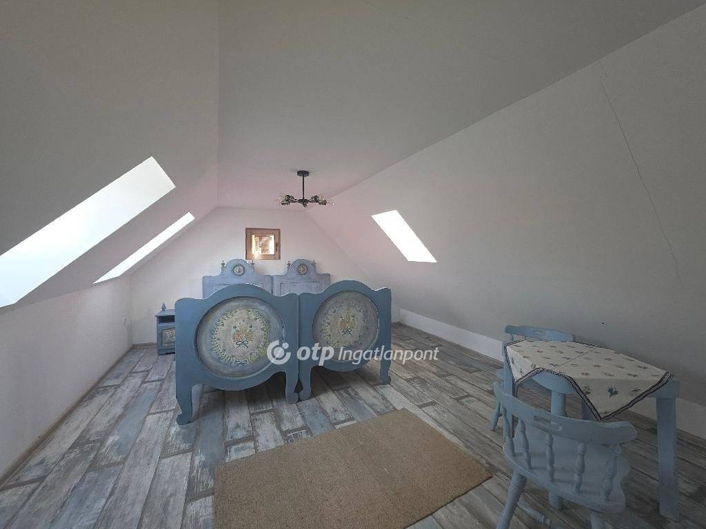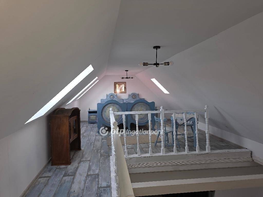 Felújított különleges hangulatú parasztházra vágyik? Hívjon még ma! Vegye meg ezt az egyedi ingatlant! Eladásra kínálok PÁPASALAMONBAN, Veszprém vármegyében, a pápai járásban, csendes környezetben, remek elrendezésű, tágas belső terekkel rendelkező, igazán otthonos, felújított, jó állapotú, belső galériás, 130 m2-es családi házat, 2018 m2-es telken. A település Pápától délnyugatra, a Bitva-patak mellett fekszik. A szomszéd települések: észak felől Dáka, kelet felől Kup, dél felől Doba, délnyugat felől Somlószőlős, nyugat felől pedig Nagyalásony. A három legközelebbi város Ajka, Devecser és Pápa, mindháromtól légvonalban körülbelül 13-16 kilométerre, közúton ennél valamivel nagyobb távolságra található. Pápasalamon a Bakonyalja nyugati végén, a Bitva- és a Kőris patak összefolyásánál helyezkedik el, szép természeti környezetben. Csend és jó levegő fogadja az idelátogatókat. Az eredeti épület 1863 körül épült, vályogból és kőből épült tradicionális paraszt ház. Az ingatlan elrendezés tekintetében áll: egy nappaliból és konyhából, (a valamikori tisztaszoba helyén), 1 háló szobából, belső galériából, tornácból, 2 fürdőszobából és illemhelyiségből. A tetőtérben 9 új tetőablak gondoskodik a természetes fényről, a tetőtér szigetelt. A földszint egy légtérben van a tetőtérrel, igény szerint külön szobák is kialakíthatók, de jelenleg egyterű az épület. Fürdőszoba található fürdőkáddal a földszinten, wc mosdóval a tetőtérben. Egy külön WC van a földszinten a hátsó kijárat mellett, ami a kertből könnyen elérhető. A WC-vel szemben kapott helyet a mosógép, egy beugróban. Minden helyiség kerámia burkolatú. A fürdőszoba kényelmes, nagyméretű. Egy mutatós kerámiabevonatú kandallóval biztosított a fűtés, amely naponta egy alkalommal befűtve folyamatosan tartja a hőmérsékletet, akár több napon át. A meleg vizet villanybojler szolgáltatja. Az ingatlant, folyamatosan újították, szépítették, minden része felújításon esett át: új tető, belső galéria kialakítása 2020-ban történt. Az épület mikrócölöp alapozással van stabilizálva, körben drénezés vezeti el a csapadékvizet. A belső válaszfalak, a tető, a födém, a kémény, az elektromos (3 fázis) és a vízhálózat teljesen új. Igény szerint hűtő-fűtő klímaberendezés telepíthető, de a ház az 50 centis falaknak köszönhetően nyáron is hűvös. A nyílászárók fából készültek, mivel ez biztosítja a folyamatos szellőzést, az utcai ablakokon zsalugáterrel. A ház kiváló statikai és szerkezeti állapotú, nyílászárói a ház eredeti hangulatát őrzik, tágas, világos terek jellemzik, minden helyiségére jellemző, hogy világos, igazán otthonos. Udvara rendezett, körbekerített, parkosított. A házhoz tartozó erdő karbantartása jórészt biztosítja a tüzelőt. Az ingatlan csatornázott. A ház főbejárata biztonsági acél ajtó, hátsó falán egy dupla üveges/zsalugáteres ajtón lehet kijutni a hátsó, fallal övezett, kavicsos udvarra, a ház első oldalán fedett gádor, ahol asztal és kerti bútor is elhelyezhető. A dupla ajtóhoz tartozik egy biztonsági motoros rács, de ezt nem kellett még felszerelni, a falu teljesen biztonságos, a szomszédok segítőkészek. A kert gondozása nem igényel nagy időráfordítást, évelőkkel van beültetve, a kavicsos udvaron erdei szamóca nő gyep helyett, nyírni és locsolni sem kell. A ház bútorokkal együtt eladó. Az otthonosan kialakított családi házat ajánlom mindazon vevők részére, akik egy szép, családias, nyugodt részen kívánnak élni, távol a város zajától. A településen minden megtalálható, ami a hétköznapokban szükséges lehet. Az utca csendes, ám minden elérhető, bolt, buszmegálló a közelben. A környék csodálatos kirándulóhely. Ajánlom mindazon érdeklődők figyelmébe, akik falun, nyugodt családias környezetben keresnek már jelen formájában felújított, kényelmes otthont, családi háznak, amely remek elosztású vagy akár üzleti szempontból is jó befektetés lehet. Az OTP Ingatlanpont teljes körű ügyintézéssel áll az eladók és a vevők rendelkezésére. A kínálatunkból választott ingatlan finanszírozásához kedvezményes hitelkonstrukciót kínálunk. Az adásvételi szerződés megkötéséhez igény szerint megbízható ügyvédi közreműködést biztosítunk, és segítséget nyújtunk az adásvételhez kapcsolódó ügyek intézéséhez is. Az ingatlanról készült alaprajz, illetve fényképfelvételek az Otp ingatlanpont szellemi tulajdonát képezik.