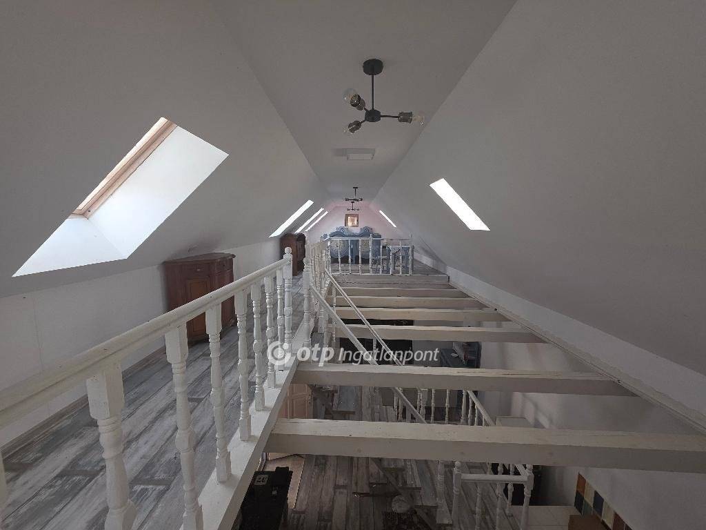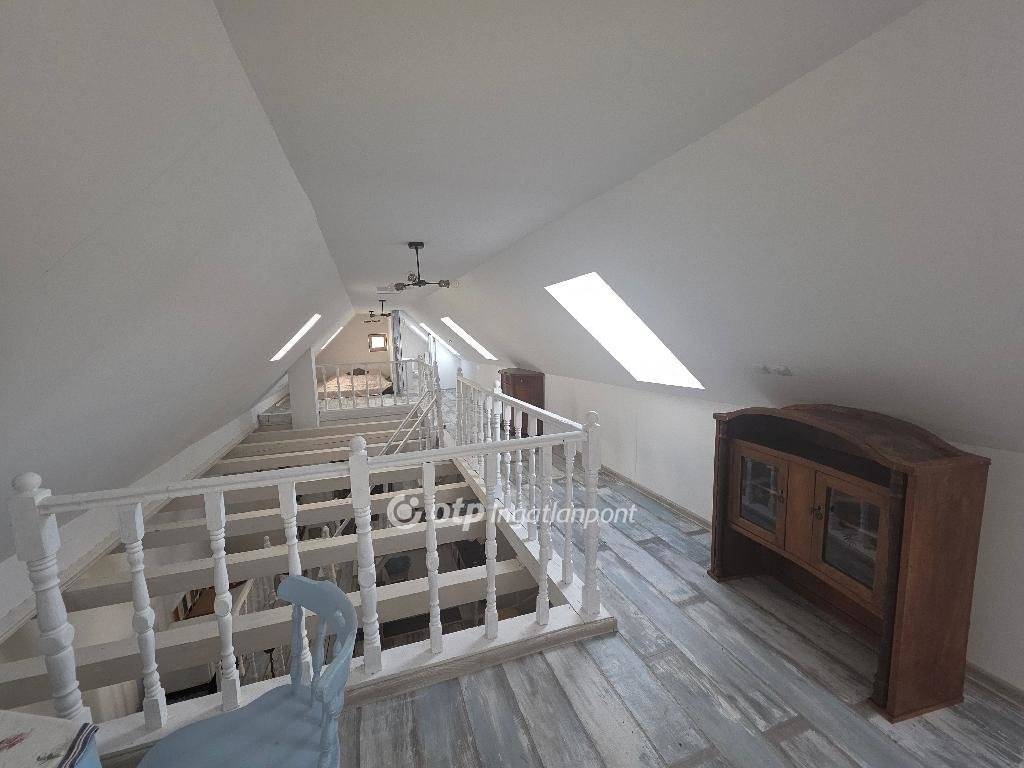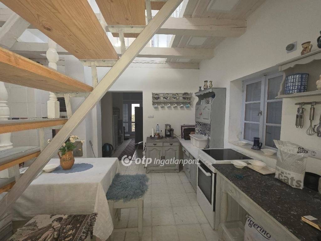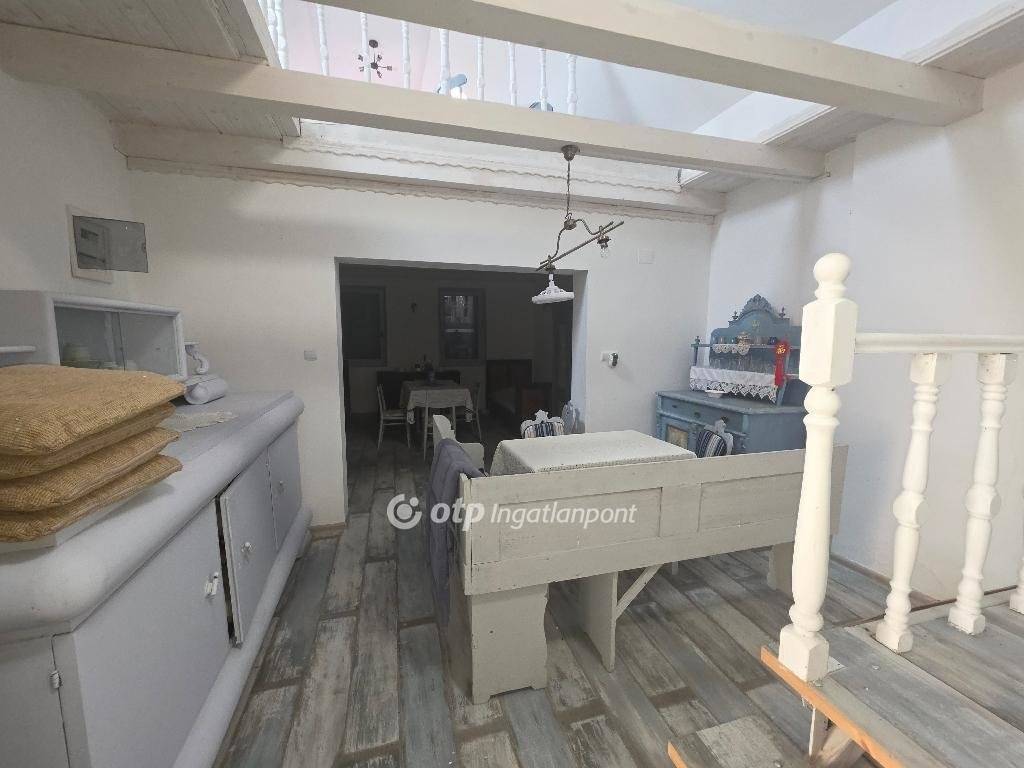 Felújított különleges hangulatú parasztházra vágyik? Hívjon még ma! Vegye meg ezt az egyedi ingatlant! Eladásra kínálok PÁPASALAMONBAN, Veszprém vármegyében, a pápai járásban, csendes környezetben, remek elrendezésű, tágas belső terekkel rendelkező, igazán otthonos, felújított, jó állapotú, belső galériás, 130 m2-es családi házat, 2018 m2-es telken. A település Pápától délnyugatra, a Bitva-patak mellett fekszik. A szomszéd települések: észak felől Dáka, kelet felől Kup, dél felől Doba, délnyugat felől Somlószőlős, nyugat felől pedig Nagyalásony. A három legközelebbi város Ajka, Devecser és Pápa, mindháromtól légvonalban körülbelül 13-16 kilométerre, közúton ennél valamivel nagyobb távolságra található. Pápasalamon a Bakonyalja nyugati végén, a Bitva- és a Kőris patak összefolyásánál helyezkedik el, szép természeti környezetben. Csend és jó levegő fogadja az idelátogatókat. Az eredeti épület 1863 körül épült, vályogból és kőből épült tradicionális paraszt ház. Az ingatlan elrendezés tekintetében áll: egy nappaliból és konyhából, (a valamikori tisztaszoba helyén), 1 háló szobából, belső galériából, tornácból, 2 fürdőszobából és illemhelyiségből. A tetőtérben 9 új tetőablak gondoskodik a természetes fényről, a tetőtér szigetelt. A földszint egy légtérben van a tetőtérrel, igény szerint külön szobák is kialakíthatók, de jelenleg egyterű az épület. Fürdőszoba található fürdőkáddal a földszinten, wc mosdóval a tetőtérben. Egy külön WC van a földszinten a hátsó kijárat mellett, ami a kertből könnyen elérhető. A WC-vel szemben kapott helyet a mosógép, egy beugróban. Minden helyiség kerámia burkolatú. A fürdőszoba kényelmes, nagyméretű. Egy mutatós kerámiabevonatú kandallóval biztosított a fűtés, amely naponta egy alkalommal befűtve folyamatosan tartja a hőmérsékletet, akár több napon át. A meleg vizet villanybojler szolgáltatja. Az ingatlant, folyamatosan újították, szépítették, minden része felújításon esett át: új tető, belső galéria kialakítása 2020-ban történt. Az épület mikrócölöp alapozással van stabilizálva, körben drénezés vezeti el a csapadékvizet. A belső válaszfalak, a tető, a födém, a kémény, az elektromos (3 fázis) és a vízhálózat teljesen új. Igény szerint hűtő-fűtő klímaberendezés telepíthető, de a ház az 50 centis falaknak köszönhetően nyáron is hűvös. A nyílászárók fából készültek, mivel ez biztosítja a folyamatos szellőzést, az utcai ablakokon zsalugáterrel. A ház kiváló statikai és szerkezeti állapotú, nyílászárói a ház eredeti hangulatát őrzik, tágas, világos terek jellemzik, minden helyiségére jellemző, hogy világos, igazán otthonos. Udvara rendezett, körbekerített, parkosított. A házhoz tartozó erdő karbantartása jórészt biztosítja a tüzelőt. Az ingatlan csatornázott. A ház főbejárata biztonsági acél ajtó, hátsó falán egy dupla üveges/zsalugáteres ajtón lehet kijutni a hátsó, fallal övezett, kavicsos udvarra, a ház első oldalán fedett gádor, ahol asztal és kerti bútor is elhelyezhető. A dupla ajtóhoz tartozik egy biztonsági motoros rács, de ezt nem kellett még felszerelni, a falu teljesen biztonságos, a szomszédok segítőkészek. A kert gondozása nem igényel nagy időráfordítást, évelőkkel van beültetve, a kavicsos udvaron erdei szamóca nő gyep helyett, nyírni és locsolni sem kell. A ház bútorokkal együtt eladó. Az otthonosan kialakított családi házat ajánlom mindazon vevők részére, akik egy szép, családias, nyugodt részen kívánnak élni, távol a város zajától. A településen minden megtalálható, ami a hétköznapokban szükséges lehet. Az utca csendes, ám minden elérhető, bolt, buszmegálló a közelben. A környék csodálatos kirándulóhely. Ajánlom mindazon érdeklődők figyelmébe, akik falun, nyugodt családias környezetben keresnek már jelen formájában felújított, kényelmes otthont, családi háznak, amely remek elosztású vagy akár üzleti szempontból is jó befektetés lehet. Az OTP Ingatlanpont teljes körű ügyintézéssel áll az eladók és a vevők rendelkezésére. A kínálatunkból választott ingatlan finanszírozásához kedvezményes hitelkonstrukciót kínálunk. Az adásvételi szerződés megkötéséhez igény szerint megbízható ügyvédi közreműködést biztosítunk, és segítséget nyújtunk az adásvételhez kapcsolódó ügyek intézéséhez is. Az ingatlanról készült alaprajz, illetve fényképfelvételek az Otp ingatlanpont szellemi tulajdonát képezik.