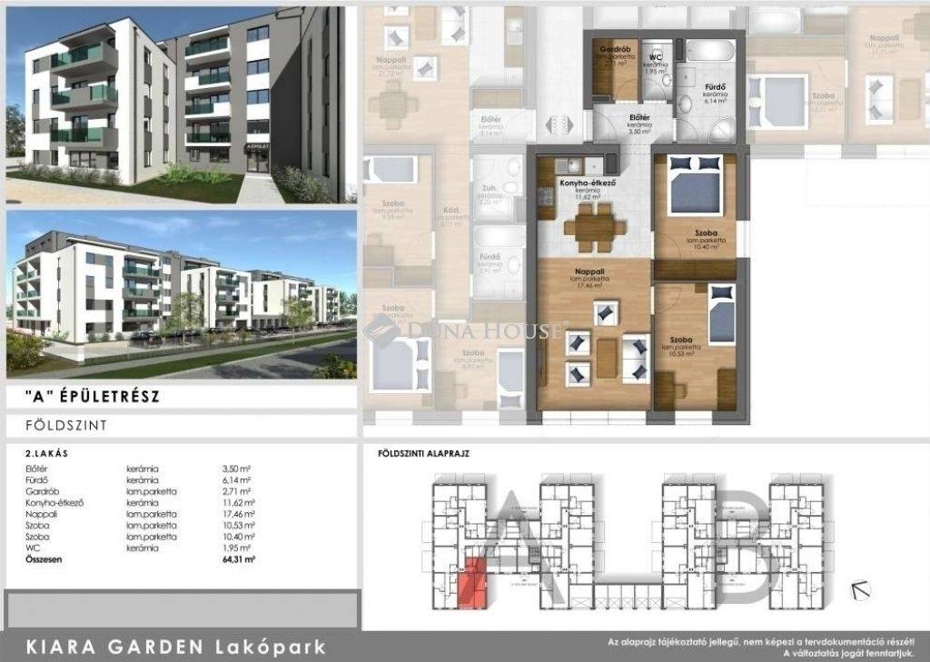 KIARA GARDEN LAKÓPARK/ ENERGIAHATÉKONY, MODERN, ZÖLDÖVEZETI OTTHONOK!A Lakópark Szombathely egyik legdinamikusabban fejlődő városrészében a Károlyi Antal utca és a Gyurits Antal utca között kerül fejlesztésre 2026 tavaszi kezdéssel és a leendő lakástulajdonosok 2027 III. negyedévben vehetik birtokba leendő otthonaikat!A két ütemben ( 2 x 50 db) épülő Kiara Garden Lakópark igényes, energiahatékony otthont kínál.Jelenleg az I. ütem értékesítése zajlik.A környék zöldövezeti mégis mindössze 10 percre a belvárostól így ideális otthont kínál családoknak ,fiatal pároknak és befektetőknek egyaránt.Már most lehetősége van arra hogy egyedi alaprajzi és belső kialakítási igényeit megvalósítsa, hiszen a korai foglalás előnyt jelent, így az ön leendő otthona már most formát ölt.Leendő ügyfeleink egészen a Nappali+1 szobás lakásoktól a Nappali+3 szobás lakásokig ( 36 nm-74 nm)megtalálhatják a számukra megfelelőt, a lakások kényelmes, nagy erkélyekkel rendelkeznek.Remek elrendezésű kisebb alapterületű lakásaink befektetésnek illetve első lakáshoz jutó fiataloknak kiváló választás. A 60 nm feletti Nappali+3 szobás lakásaink kialakításánál figyelmet fordítottunk a nagycsaládos ügyfeleinkre is.Felhívjuk kedves ügyfeleink figyelmét, hogy utóbbi lakástípusokat ajánljuk a CSOK kínálta lehetőségek felhasználására, mivel ezen lakástípusok minden követelménynek megfelelnek és cégünk természetesen nem zárkózik el a CSOK által későbbiekben kiutalásra kerülő vételárrész elöl.Az épületekben kellő számú zárható tároló helyek kerülnek kialakításra külön bejárattal (méretek: 2,96 nm-5,36 nm /árak: 1,79 M Ft-3,19 M Ft), illetve a társasház udvarán, környékén a beruházó felszíni parkolókat alakít ki, ezek 1,49 Millió Forintért vásárolhatók meg.A gazdaságos fűtés és, melegvíz ellátást a városrészen újonnan megépített városi távhő szolgáltató biztosítja, egyedi, termosztátos szabályozással és egyedi fogyasztásméréssel. A lakásokban padlófűtés biztosítja a szükséges hőmérsékletet, a hűtést egyedi split klíma biztosítja 1 db kül- és beltéri egységgel. A beltéri egység a nappaliban szerelve része a lakás vételárának.A tervezők által megálmodott modern formai világba öntött egységes képet mutató, ugyanakkor a zártudvari társasház együttes a korszerű városi életforma minden előnyét vissza kívánja adni az ott élőknek.A Kiara Garden Lakópark otthonainak megálmodásakor olyan összetett megoldásban gondolkodtunk, amelyben az épület és a zöldterület együttese harmonikus környezetet alkot, a fiatalok, családosok és az idősek igényeit egyaránt szem előtt tartva. A modern, lapos tetős épület környezetbe illesztését rendezett kert teszi teljessé.A szerződést követően a kedvezményes 3 %-os hiteligénylés elindítható, így ügyfeleink nem maradnak le a kormány által nyújtott támogatásról.A lakások iránt intenzív az érdeklődés, ha érdekli Önt hívja irodánkat mielőbb!További információkért és megtekintésért kérem hívjon vagy írjon e-mailt!