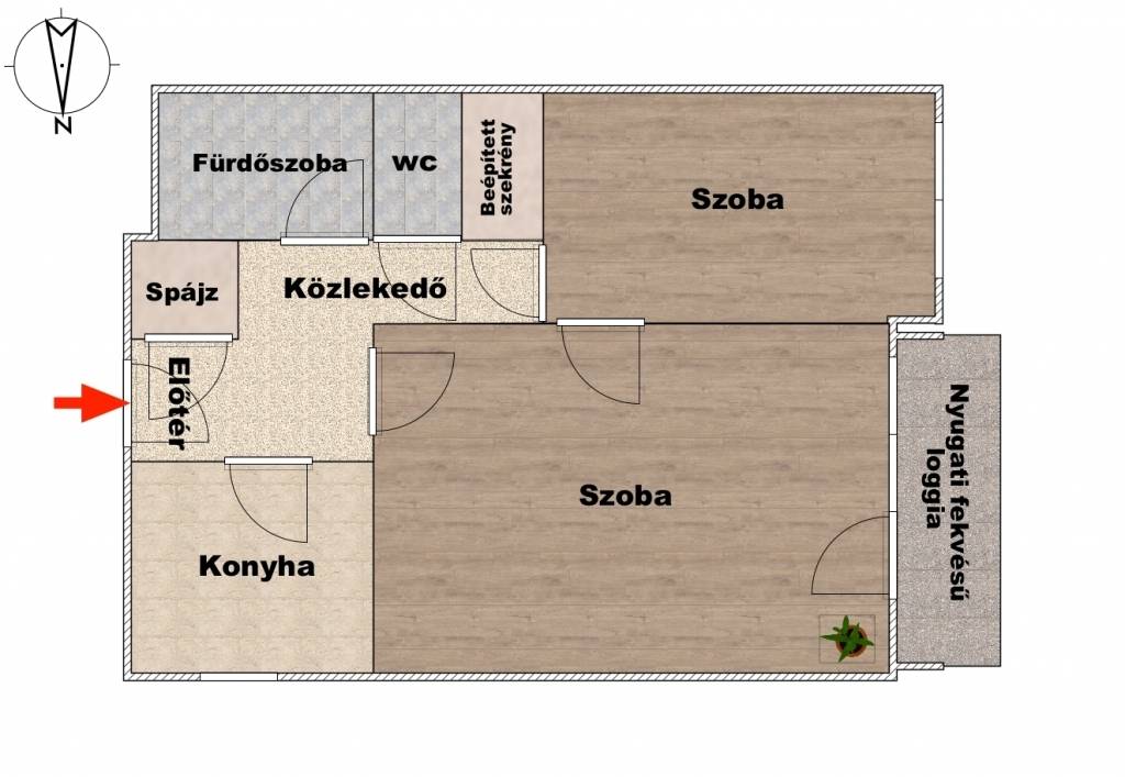 - a legnagyobb szobához 5 nm-es, nyugati fekvésű loggia tartozik