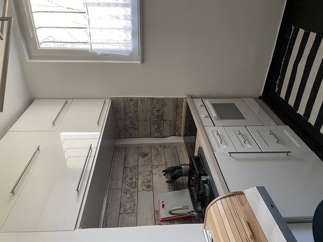 A konyha tágas, világos, ablakos a fiatalos modern új konyhabútorral és gépekkel együtt a vétel ár részét képezik .