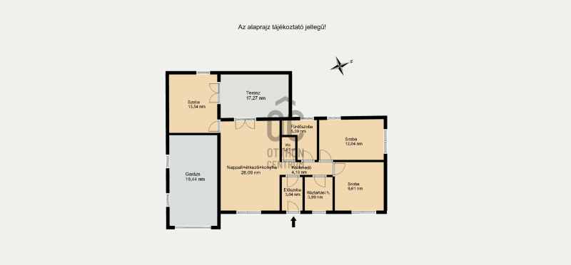* Amerikai konyhás nappali étkezővel, 3 szoba, 1 fürdőszoba + wc, külön illemhelység, terasz + 1 beállásos garázs