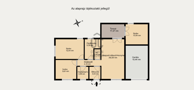* Amerikai konyhás nappali étkezővel, 3 szoba, 1 fürdőszoba + wc, külön illemhelység, terasz + 1 beállásos garázs