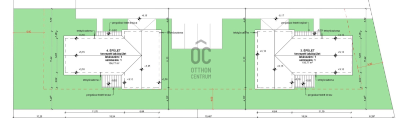 * 91,5 nm hasznos alapterület + 13,5 nm-es pergolával fedett terasz