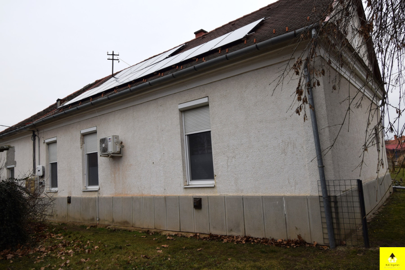 Sopronhorpácson 3 lakásos társasházban 89 m2-es, 4 szobás lakás eladó! Az ingatlan kiváló szerkezeti állapotban van, folyamatosan, gondosan karbantartott. A tető 10 éve lett felújítva új héjazatot kapott, pár évvel ezelőtt pedig napelem rendszer került rá, így a villanyszámla 0 Ft. Téglából épült a falak szárazak. A felújítás során cserélve lettek a nyílászárók, az elektromos, a víz és a szennyvízvezetékek is, valamint megújult a fürdőszoba. Melegvízellátását villanyboyler, fűtését gázkonvektorok biztosítják, de van fűtésre optimalizált klíma is a, mellyel a szaldós elszámolású napelem rendszernek köszönhetően ingyen fűthetünk. A lakáshoz tartozik egy kizárólagos használatú telekrész egy tároló, amely és egy nagy méretű szintén tégla falazatú „fatároló” is amely egyéb más célra pl. műhelyként, raktárként is hasznosítható. Amennyiben a későbbiekben a társasház mindhárom tulajdonosa úgy dönt, akkor a telekrészek 1 db önálló építési telekként funkcionálhat, beépíthető, vagy eladható. A ház alatt van pince közös használatú pince, az udvaron pedig egy közös gyűrűs, ásott kút, ha valaki öntözni szeretné a kertjét. A lakás fenntartási költsége, rezsije rendkívül alacsony.