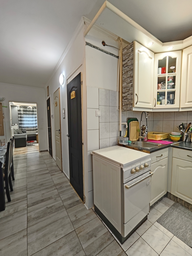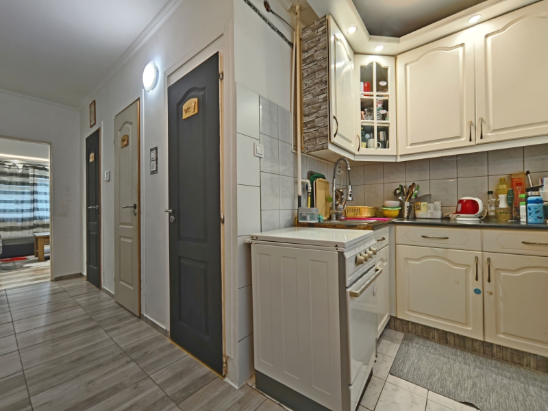 Eladó Miskolc, Győri kapuban, az Virág utcában, egy 2018-21. között részben FELÚJÍTOTT, 63 m2-es, 3 szobás, DÉLI fekvésű, EGYEDI MÉRŐS, földszinti (4 emeletes házban) panellakás.