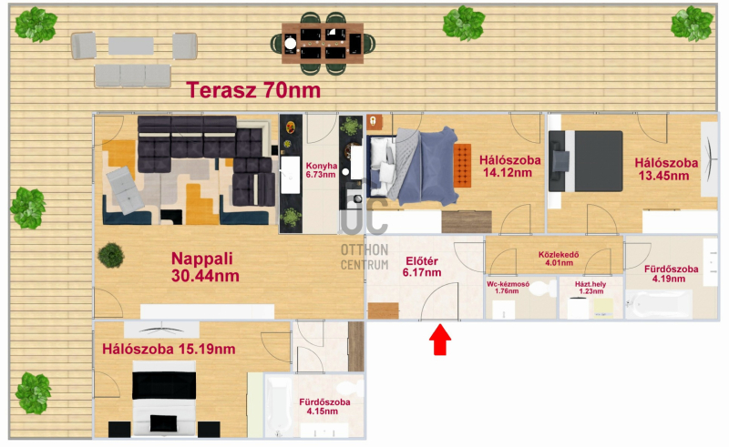 + Mivel eddig nem volt lakva, így teljesen újszerű állapotban van. Frissen lett festve és a teljes terasz frissen lett újra burkolva.