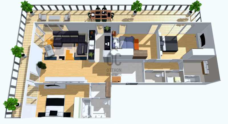 + A kényelmet fokozza az egész lakásban kialakított okos otthon rendszer, ami világítástól kezdve, a fűtésen át az elektromos redőnyig mindent kezel. Természetesen minden termék és energiahatékony kivitelezésű.
