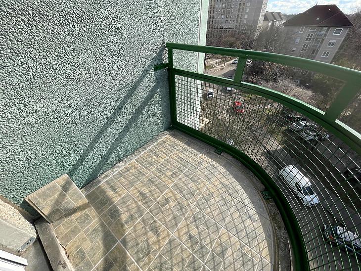 Káposztásmegyer I.-en, Farkas-erdőre néző, 10 emeletes társasház V. emeletén, 38nm-es 1szobás lakás eladó, 3nm-es ERKÉLLYEL.