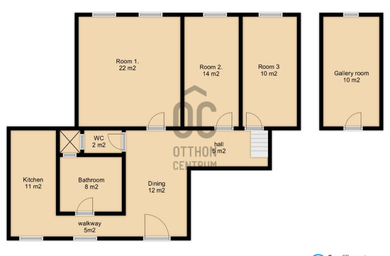 A 90 m² alapterületű ingatlanhoz tartozik egy további 9 m²-es felső szinti szoba, így a lakás praktikusan 4 külön nyíló szobával rendelkezik. Az elrendezés ideális hosszú távú bérbeadásra, munkásszállásnak, diákoknak vagy többfős bérlői struktúrára.
