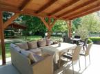 Udvara parkosított, öntözését egy fúrt kút biztosítja, öntöző rendszerrel (beüzemelése az új tulajdonosra vár) , fedett kocsibeálló, szaletlivel.