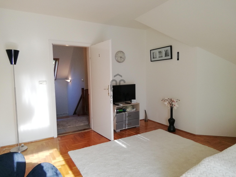 Emelet: 5 szoba saját erkéllyel, fürdőszobával, inverteres klímával, padlásfeljáró, tároló helységek