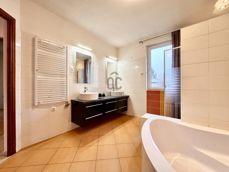 30 nm-es üzlethelyiség, mely szépségszalonnak van kialakítva. Több mint 10 éve fodrász bérli. A bérleti díj bőven fedezi a ház rezsijét, sőt még bőven marad is belőle. Ha valaki viszont még szobát szeretne kialakítani arra is van lehetőség, mivel az üzlethelyiség és ház közötti fal úgy lett kialakítva, hogy összenyitható legyen. Tehát nappali+3,4 szobássá alakítható a ház.