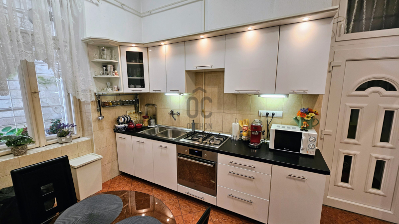 A lakás egy klasszikus belvárosi, 28 lakásos társasházban található, rendezett és kulturált lakóközösséggel. A közös terek kamerával védettek.