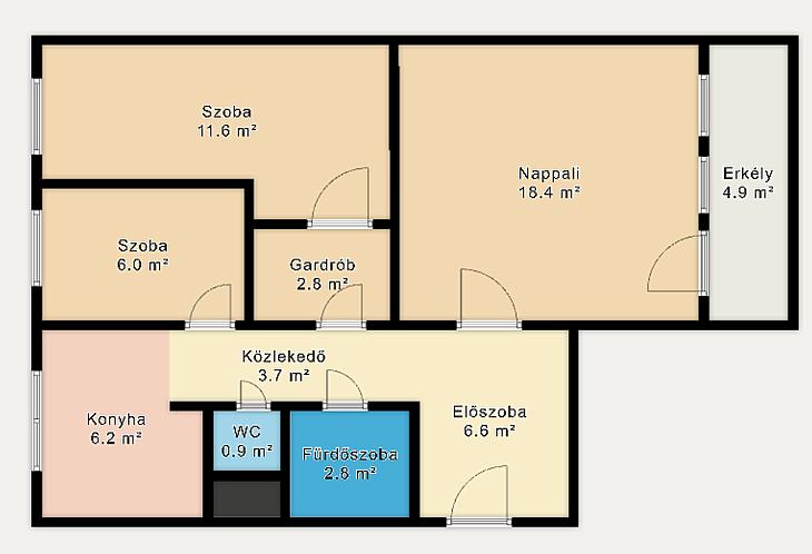 Az ingatlan praktikus kialakításának köszönhetően minden helyiség külön nyílik, a tágas nappali mellett két jól kihasználható szoba biztosít kényelmes életteret. A lakás egyedileg szabályozható távfűtéssel rendelkezik.