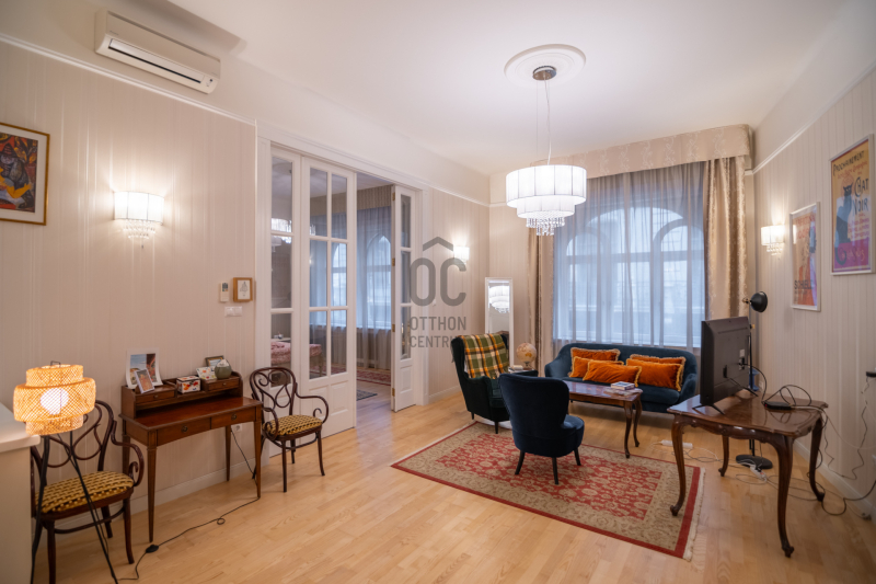 Történelmi polgári lakás Budapest V. kerületének patinás városrészében ahol az időtlen elegancia és a múlt értékei találkoznak.