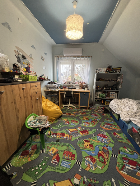 Az ingatlan csendes, nyugodt zsákutcában található, barátságos szomszédokkal. A központ (bolt, piac, zöldséges, óvoda, általános iskola, buszmegálló) mindössze 5 perc sétára elérhető.