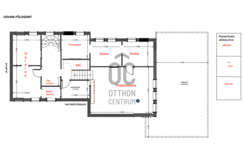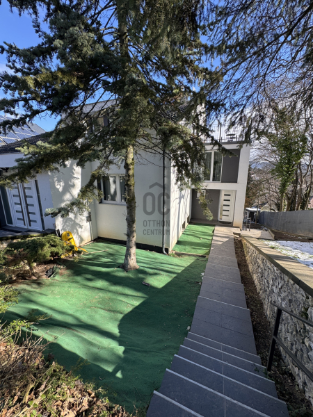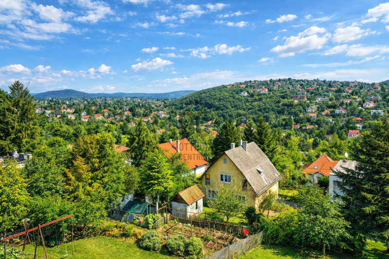A kert teraszos kialakítású, örök panorámával Remetekertváros dombjaira. Jacuzzi és szauna előkészítés, napelem kiállás, gondozott zöldfelületek. Elektromos tolókapu, riasztórendszer, teljes közművesítés.